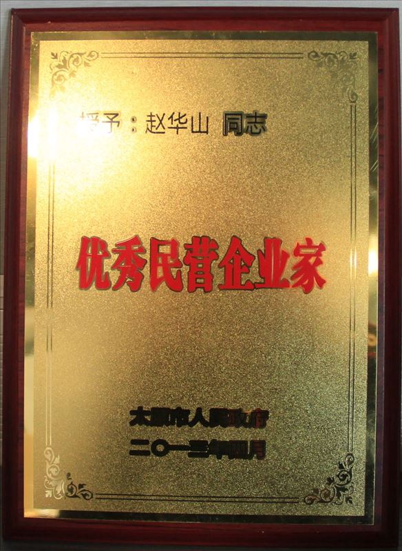 趙華山董事長(zhǎng)榮獲“太原市優(yōu)秀民營(yíng)企業(yè)家”稱號(hào)
